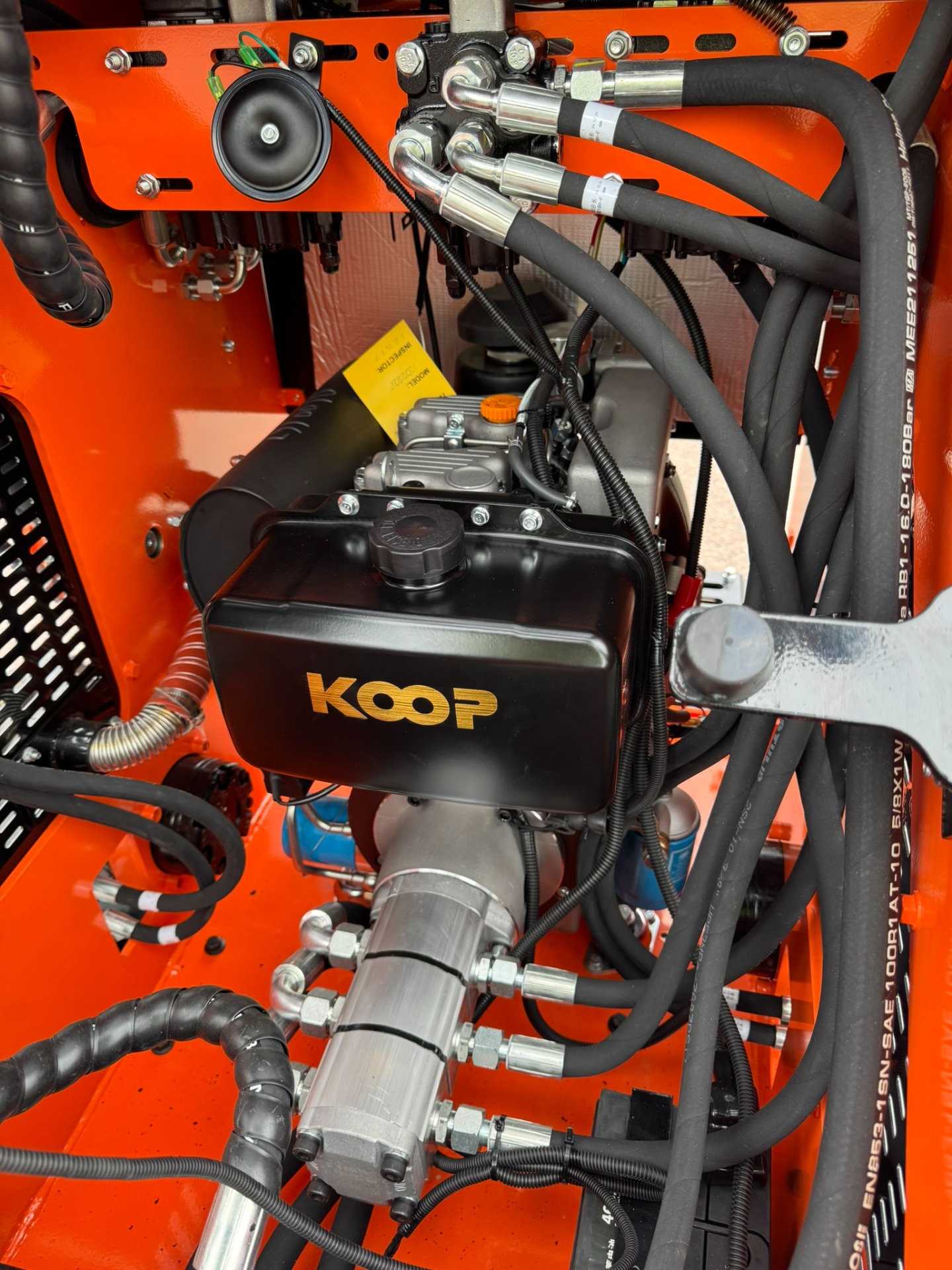 Motoralternativ: Tvåcylindrig RATO (bensin) på 20,4hp eller KOOP´s tvåcylindriga dieselmotor på 19hp. Bredd 1030mm, lyftkapacitet 400kg och maskinvikten ligger på 900kg. Ett riktigt kraftpaket. Hastighet 4 km/h.