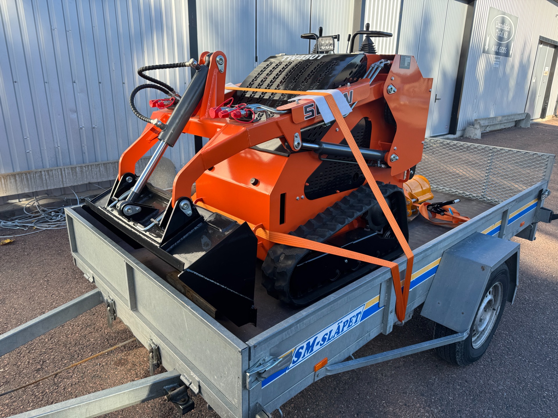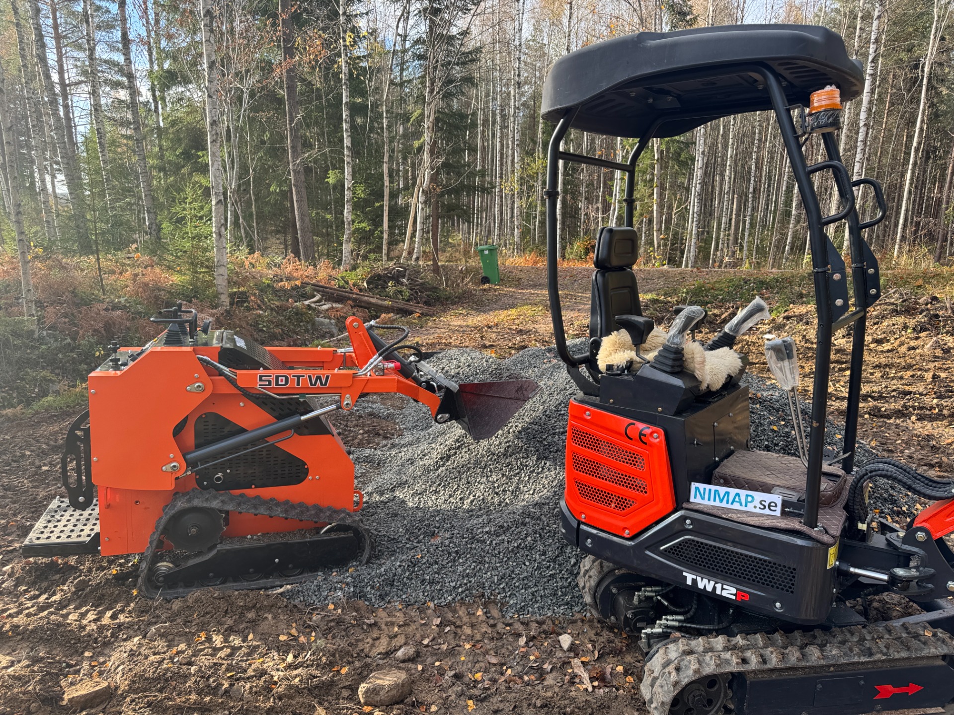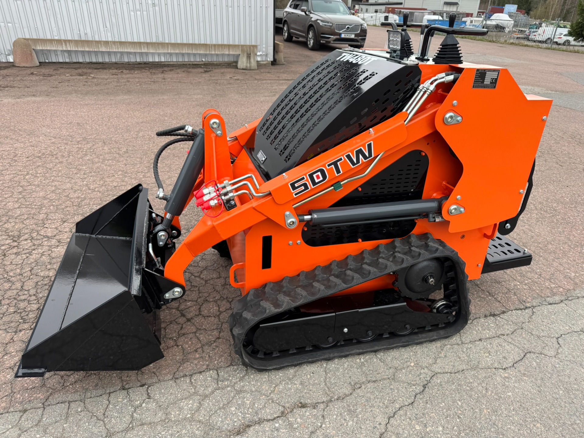 Minilastare TW480T med banddrift (finns även med hjuldrift). Skopan ingår i priset och det finns många tillbehör och köpa till vid behov.