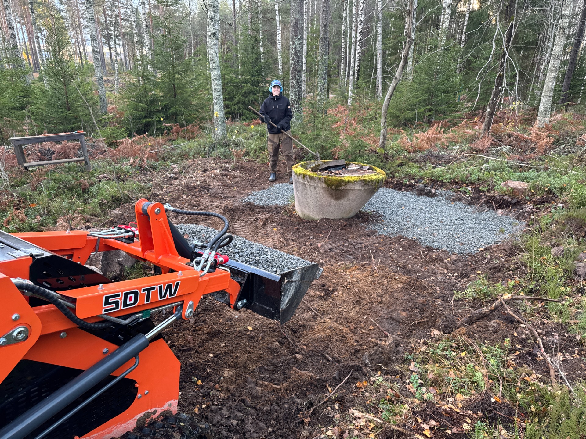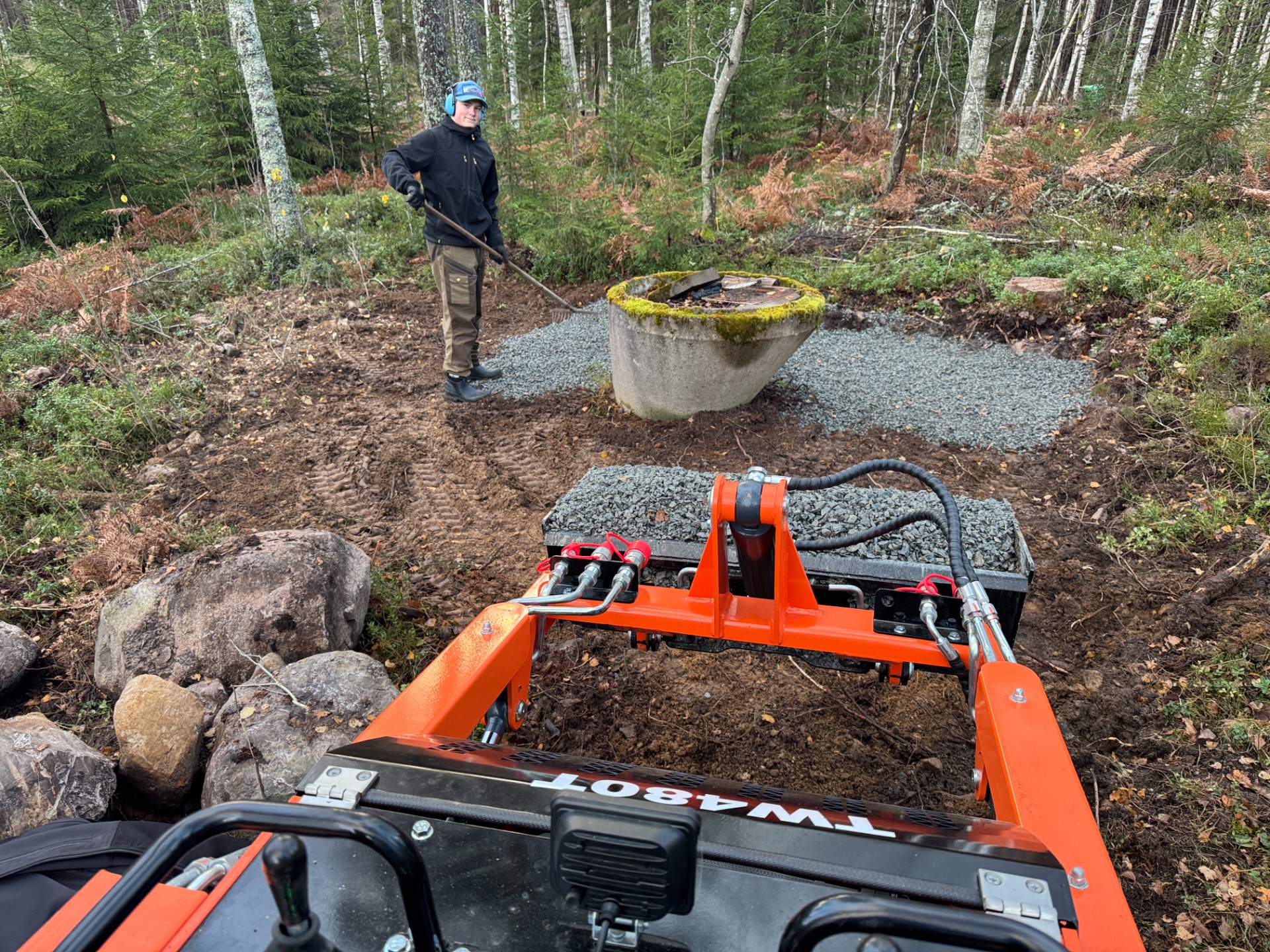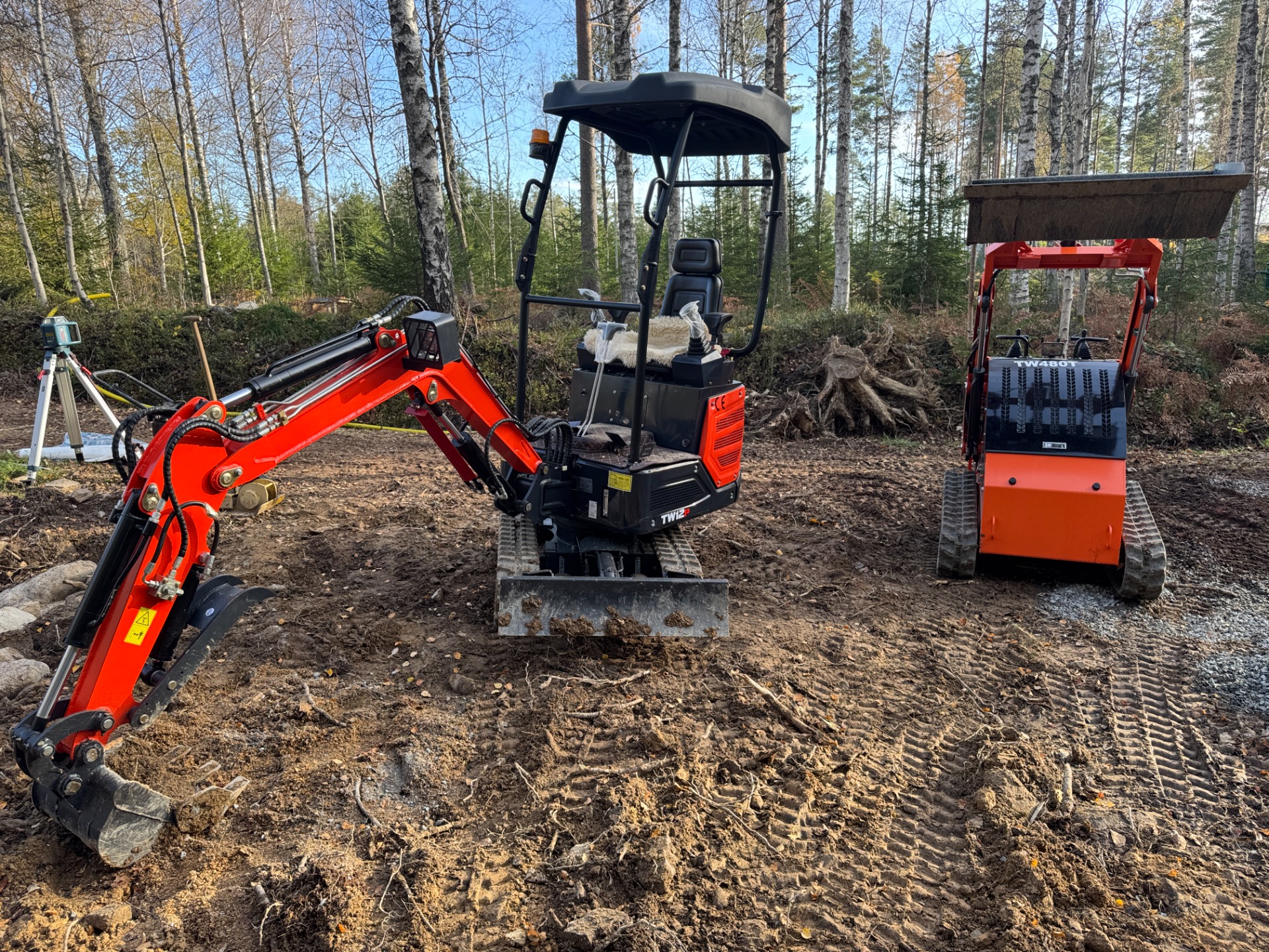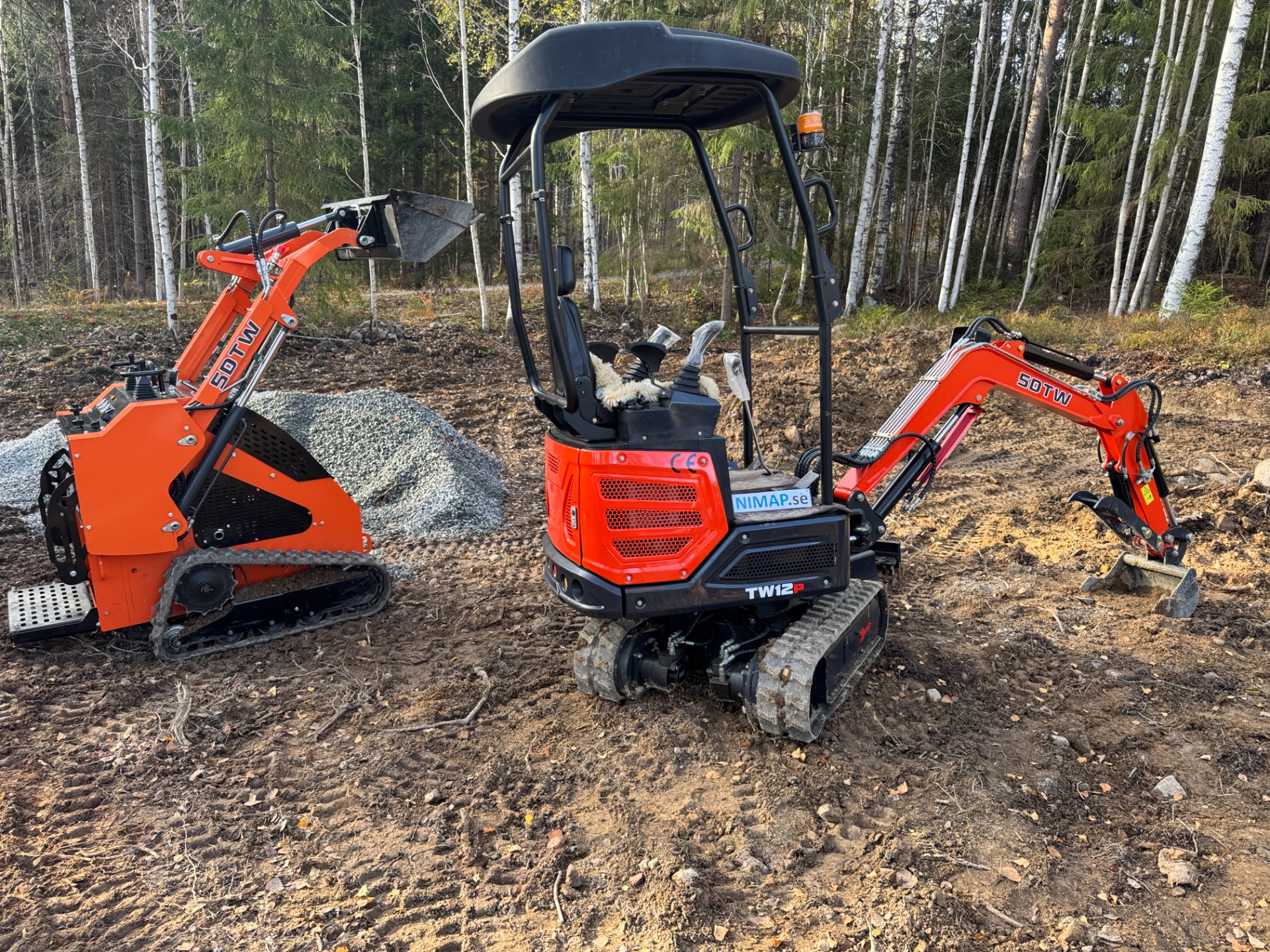 Minilastare TW480T med banddrift (finns även med hjuldrift). Skopan ingår i priset och det finns många tillbehör och köpa till vid behov.