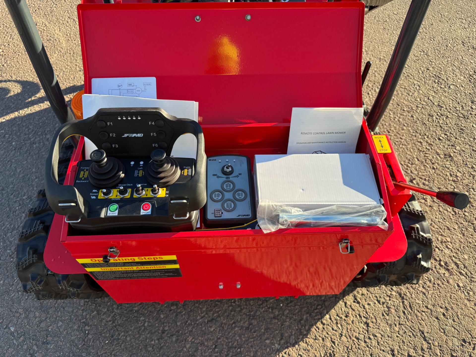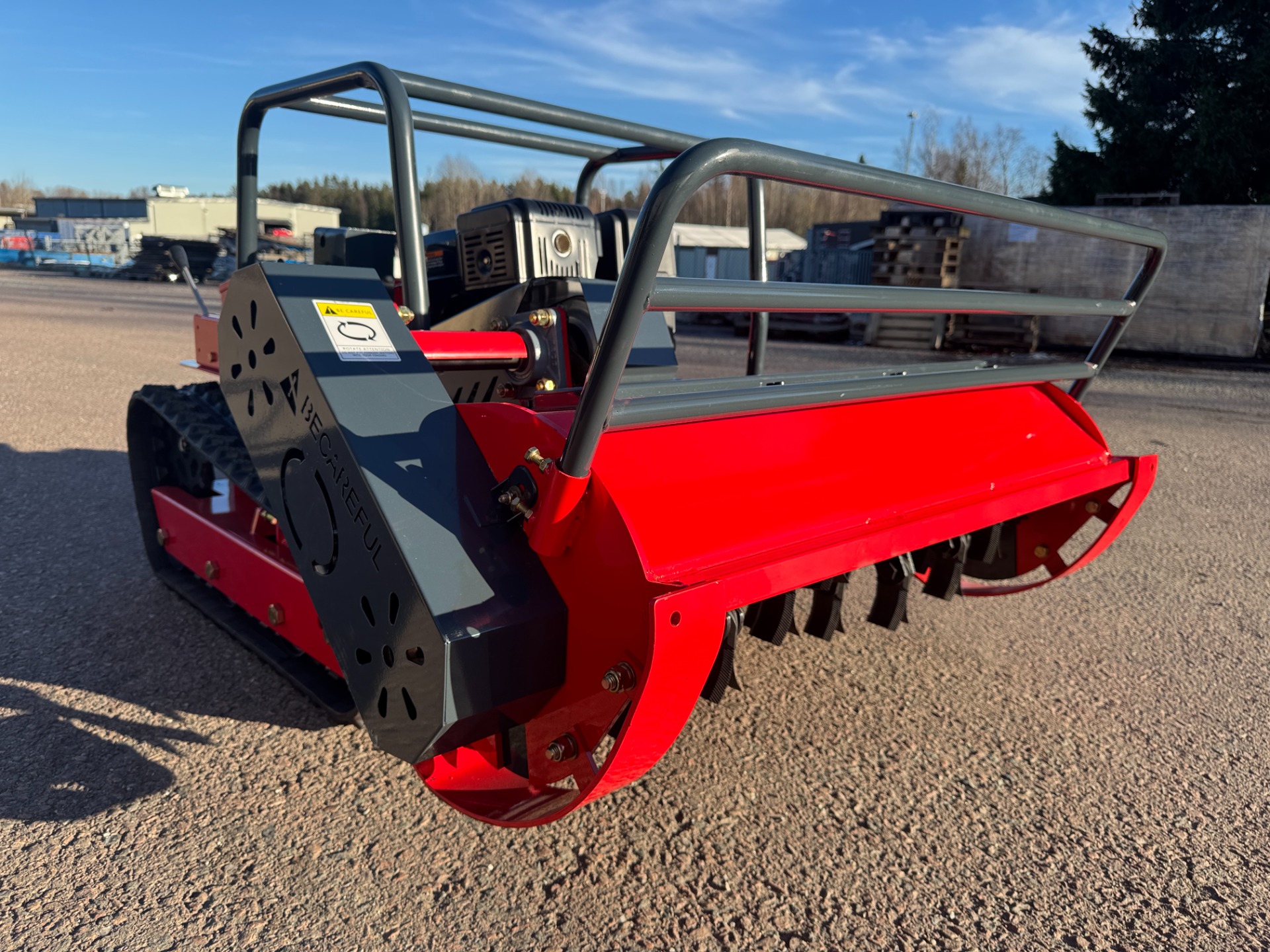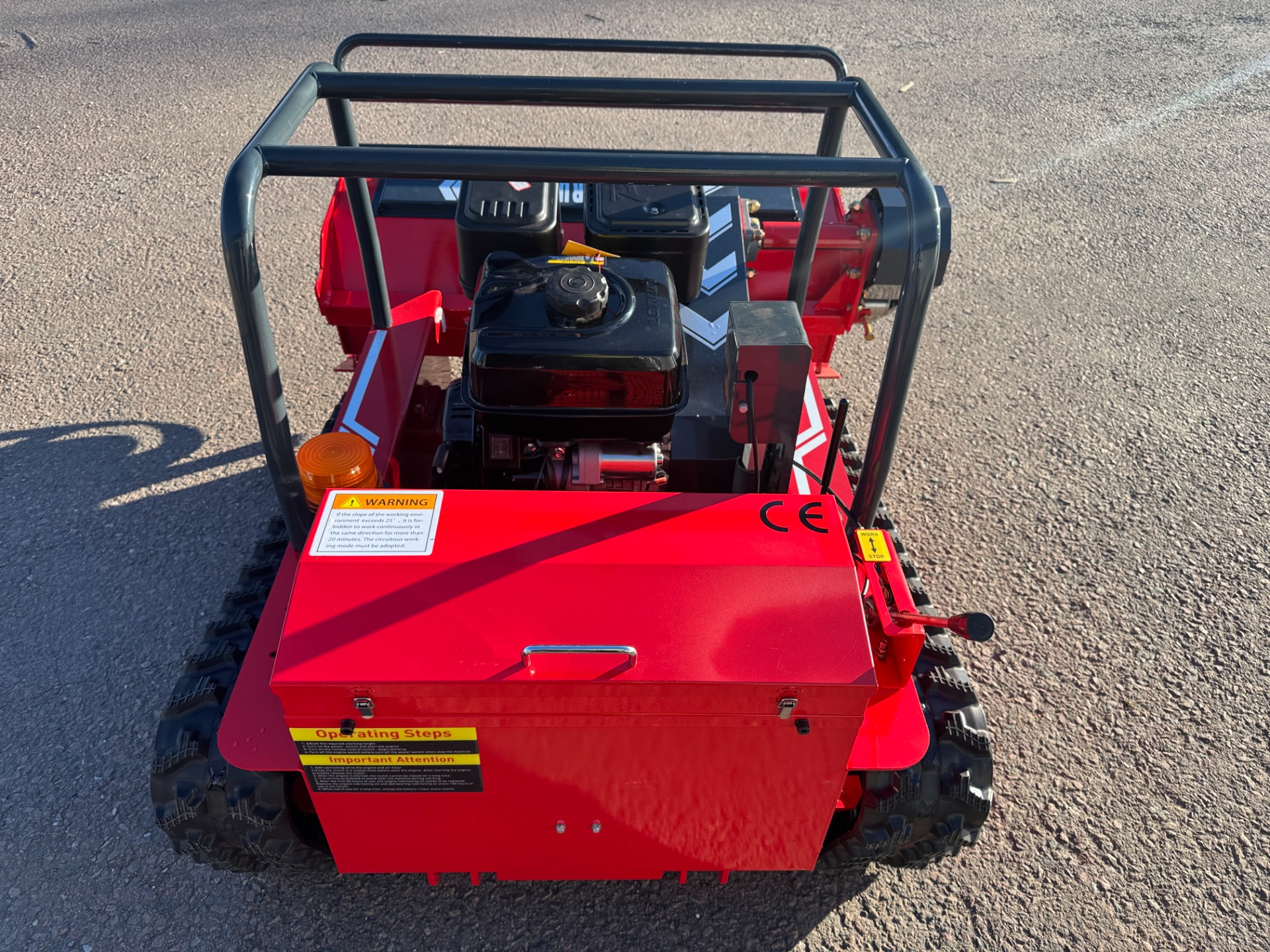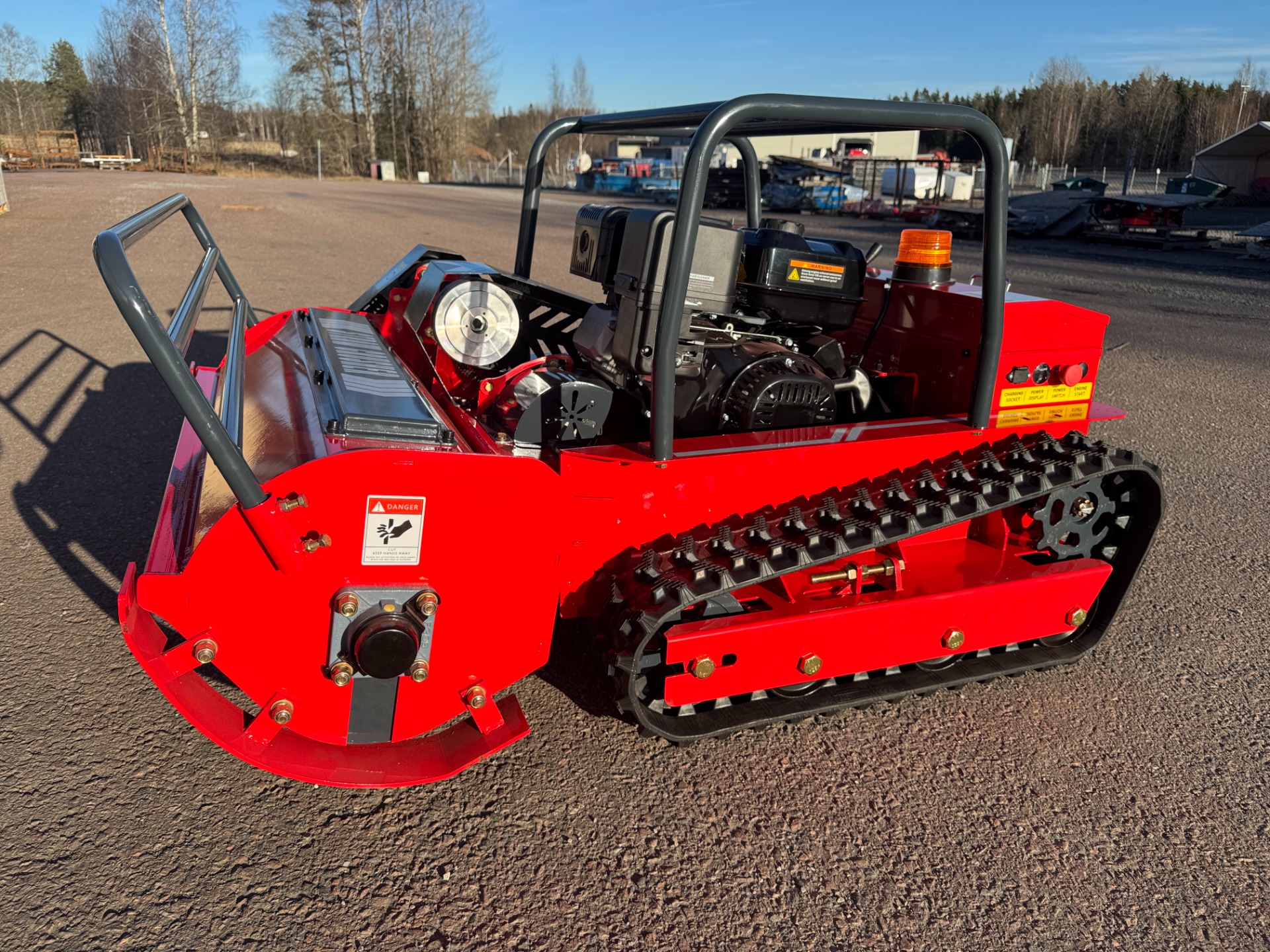 Radiostyrd släntklippare/slaghack XP-1000, 42st. Y-järn på valsen. Klippbredd 1 meter. Loncin motor, encylindrig luftkyld bensin motor på 18hp. 400 meters räckvidd på radiokontrollenheten. Se mer teknisk data under fotografierna.